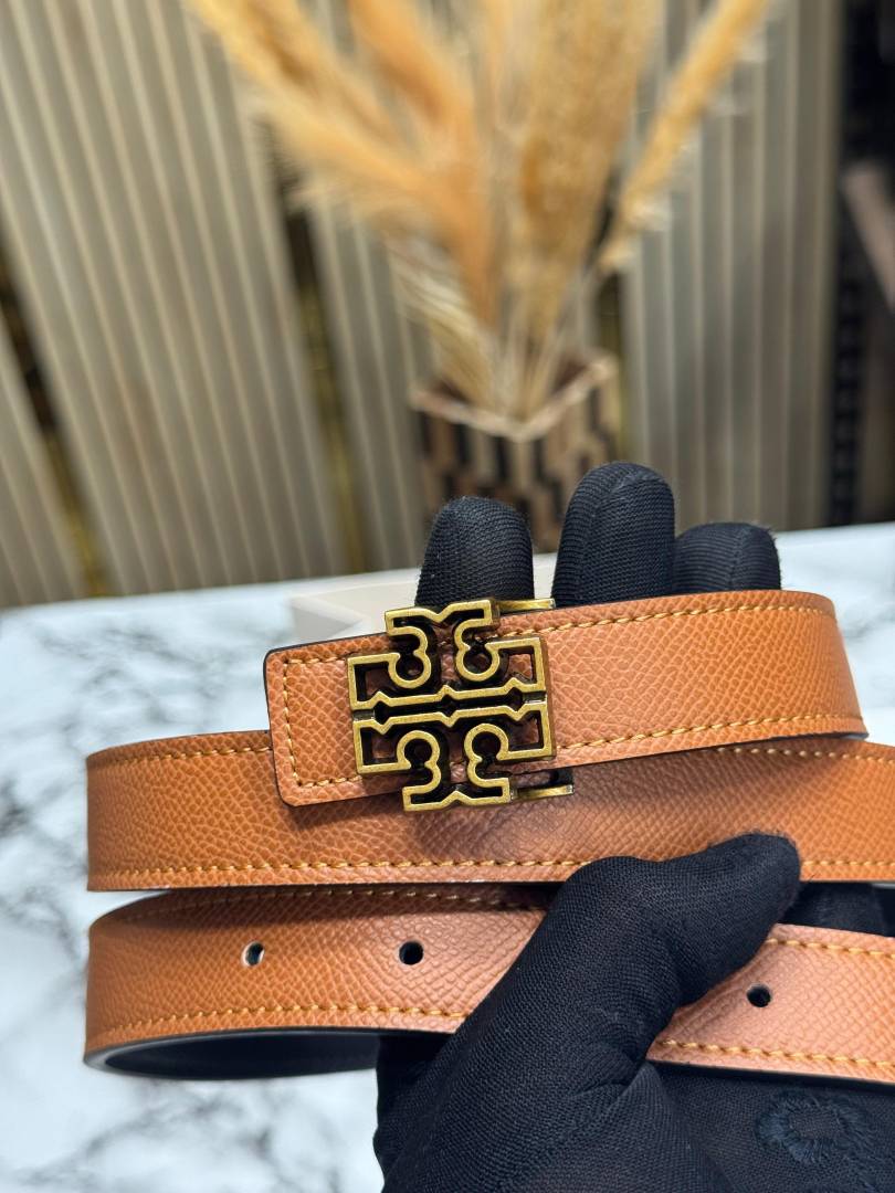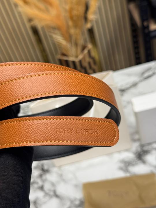 • Tory_Burch Pave Double T Logo Iconic Belt (T55-TAN)
